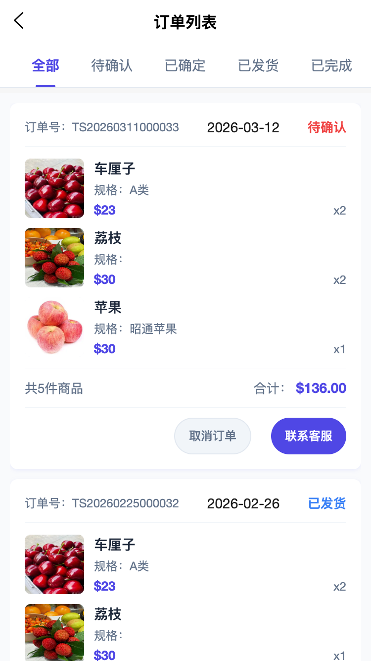 全流程追踪:从待确认→已确定→已发货→已完成,状态实时更新,物流进度尽在掌握
